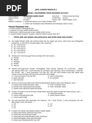 Contoh Soal Pg Waris Islam Kelas 12 Dan Jawabannya