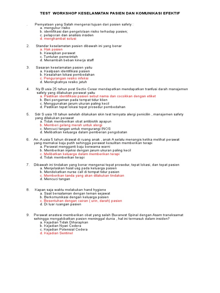 Kunci Jawaban Soal Keselamatan Pasien Dan Komunikasi Efektif