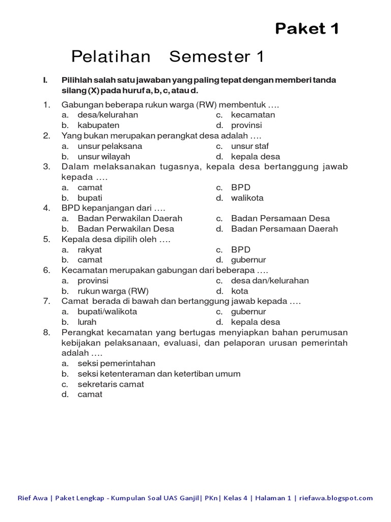 Soal Soal Pkn Kelas 4 Guru Galeri